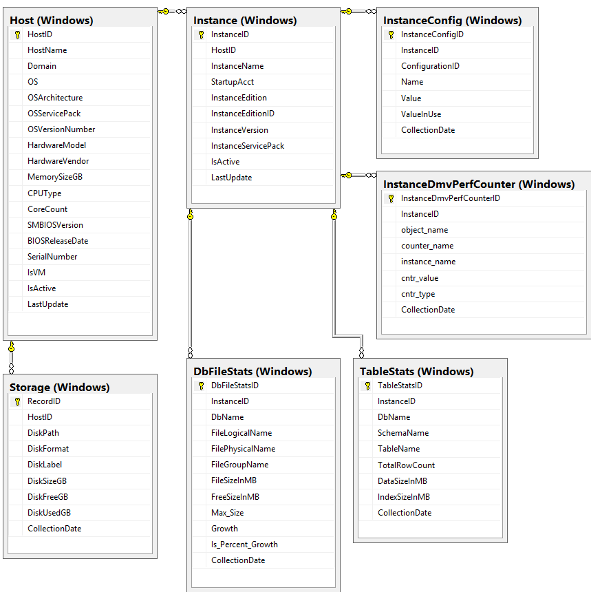 Here is the ER diagram of the JiMetrics database. For now there are only 7 tables involved under the Windows schema, so it is pretty easy to understand and query.